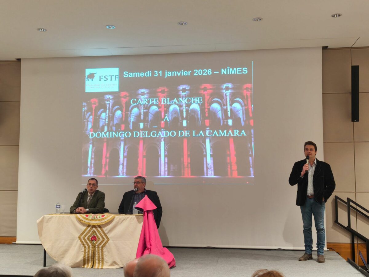 A l’initiative et sur invitation de la Fédération des Sociétés Taurines de France, samedi 31 janvier 2026, l’auditorium du Carré d’art Jean Bousquet de Nîmes a vibré au son des paroles sincères, justes et passionnées de notre invité Domingo Delgado de la Camara, journaliste, écrivain et grand érudit de la Tauromachie.