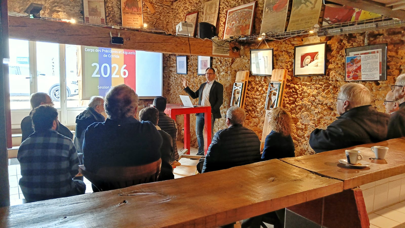 L’après-midi a été consacrée au projet « Palco 2030 », dont l’objectif est de répondre au plus près aux besoins des présidents de corridas. Ce projet sera construit à partir des retours d’expérience des palcos, mais également de l’ensemble des aficionados. Cette démarche résolument participative a permis une session dense en échanges, en partages d’expériences et en propositions concrètes, dont nous vous ferons prochainement part.